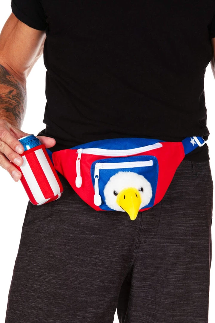 Tipsy Elves Bald Eagle Fanny Pack With Drink Holder Patriotic