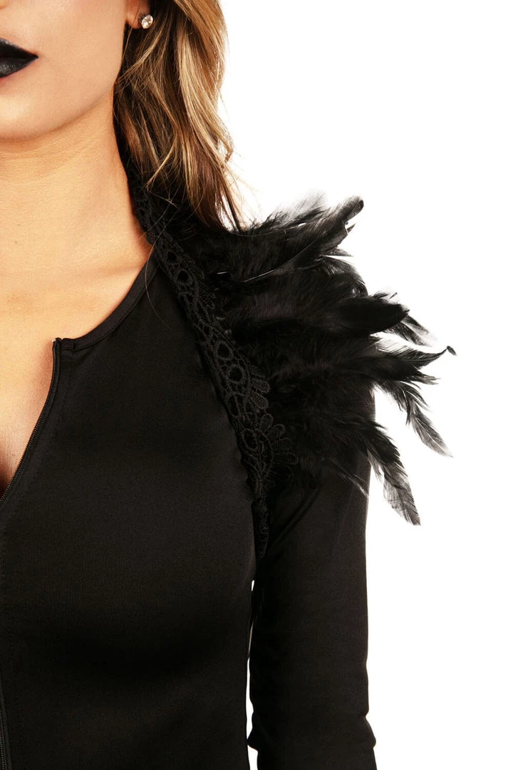 Here’s the crazy thing about Ravens: they don’t fly in flocks. No, they gather in MURDERS. If that isn’t already the creepiest/most rock n roll thing you’ve ever heard, I don’t know what is. The Black Raven Bodysuit Costume is a one-piece zip-up that says NEVERMORE to lame costumes. Zip into the classic black feathered bodysuit for a flattering, albeit terrifying, ode to everyone’s favorite animal of the night. Complete with a raven’s head for your hand, this costume is all you need to fly into Halloween parties and leave a lasting impression. So while everyone else is in their lame cosplay costumes, they’ll be pondering once upon a midnight dreary (whatever that means) how you look so good. It’s like getting away with…that’s right…murder. Pick up the Black Raven Costume for Halloween and be the best bird on the block.