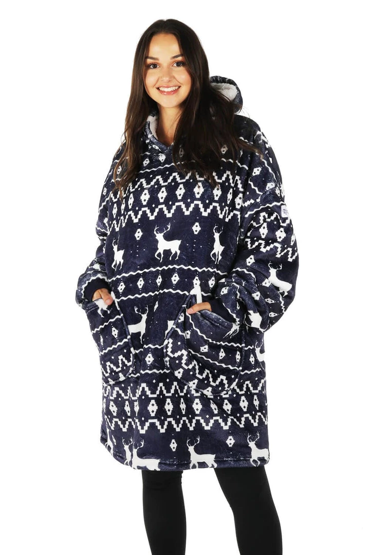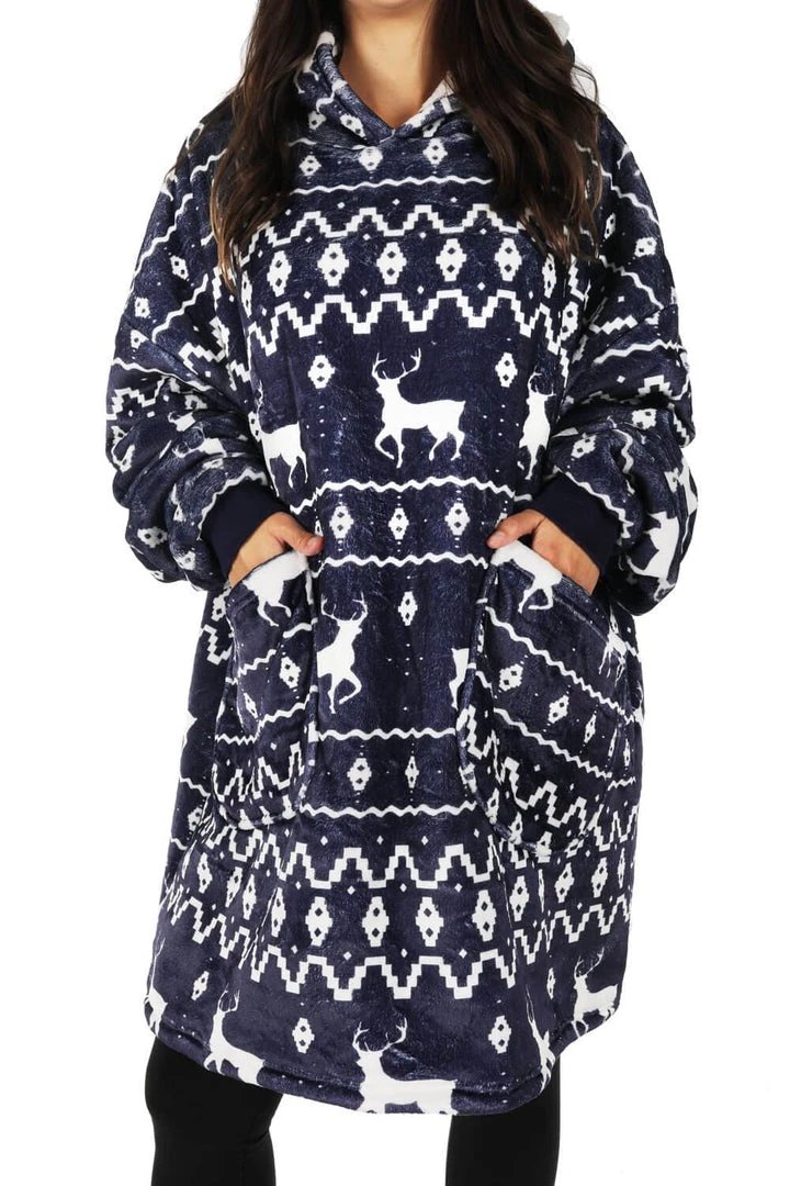 Tipsy Elves Blue Reindeer Blanket Hoodie