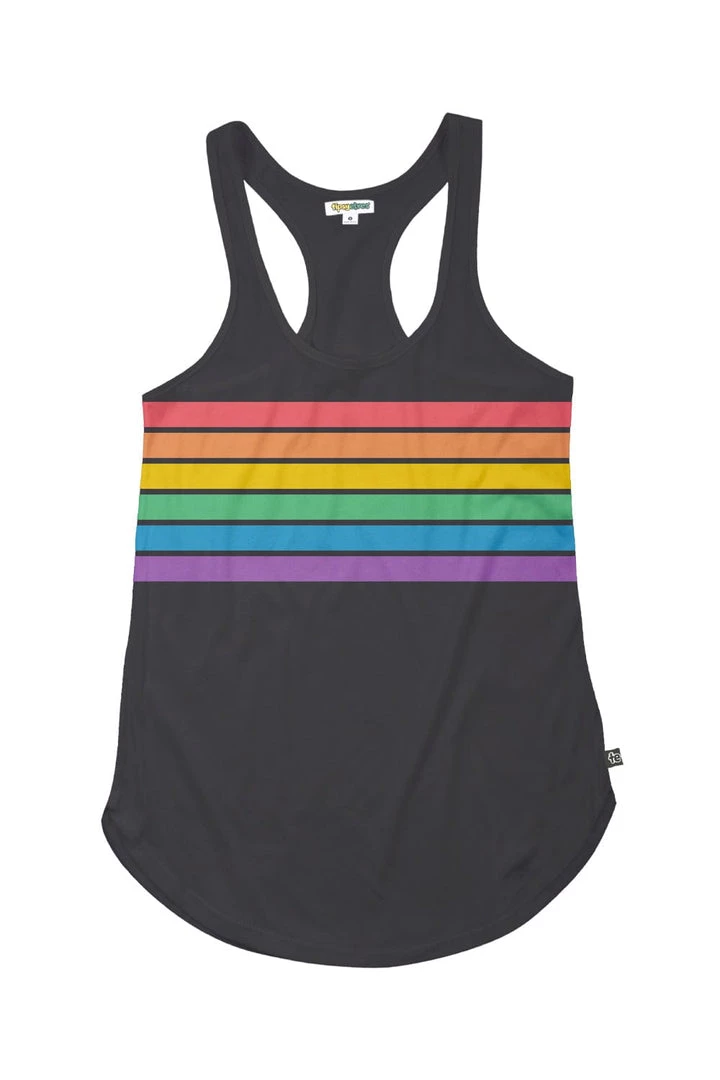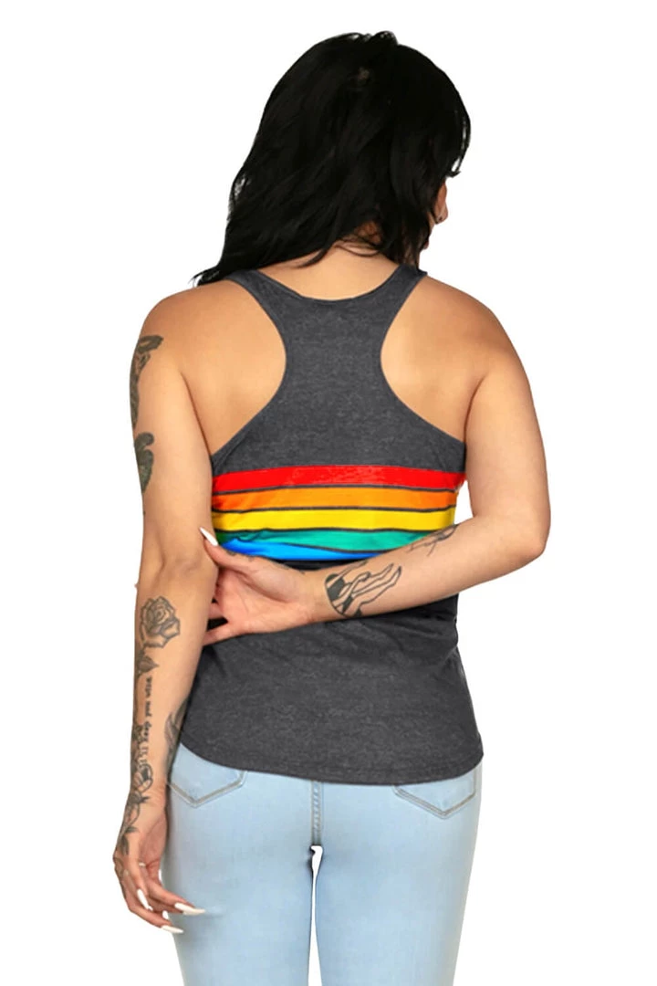 Looking for a Pride shirt that’s colorful and also slimming? We got you. Introducing our (Women’s) Charcoal Rainbow All the Way tank top. It’s great for Pride celebrations, hitting the gym or just chilling at barbecues. Don’t be put off by the charcoal – it’s got every color of the rainbow.
