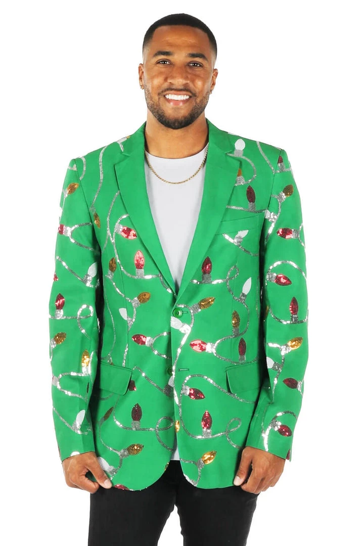 Tipsy Elves Green Sequin Light Blazer Men