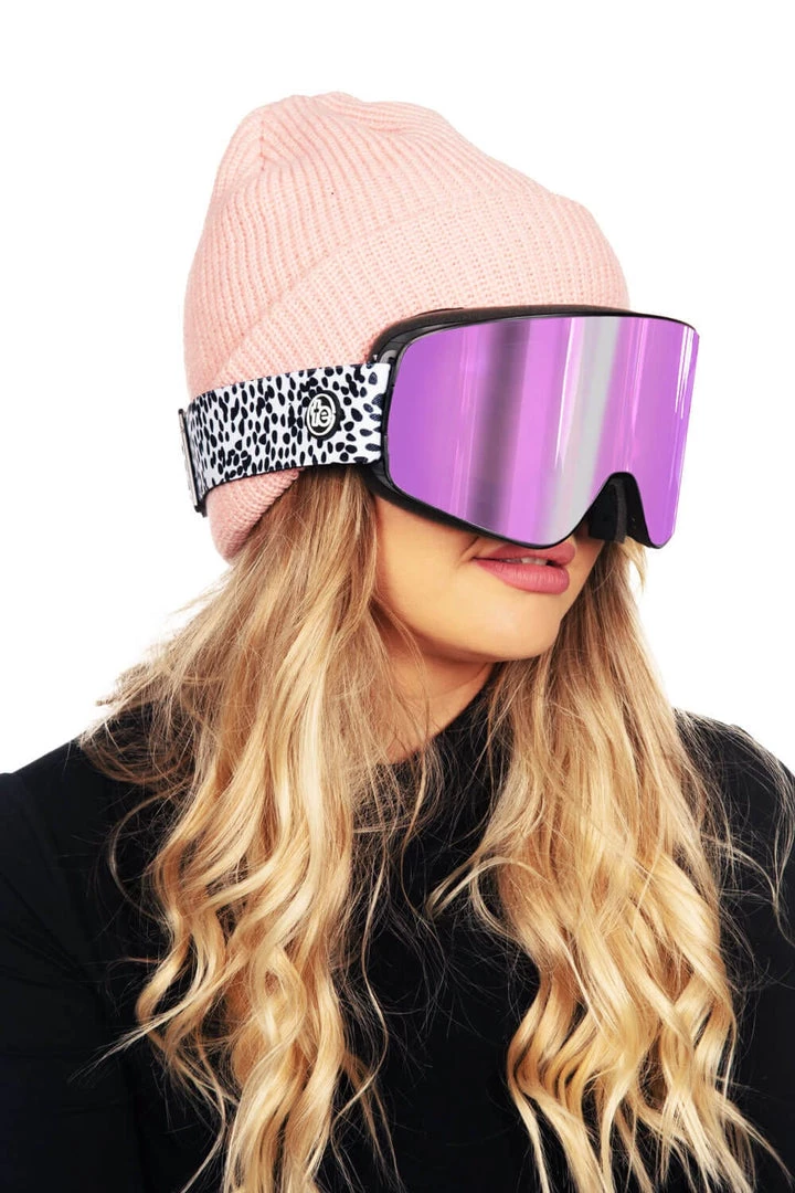 There is power in champagne as there is power in powder. We’re combining two top-tier favoirites in the Champagne Powder Cascade Ski Goggles! A light-pink rose tint stars as the main event in these 100% UV protection goggles lined with a black spotted print on the adjustable, ultra-secure head straps. It’s time to see the powder through rose-colored goggles.