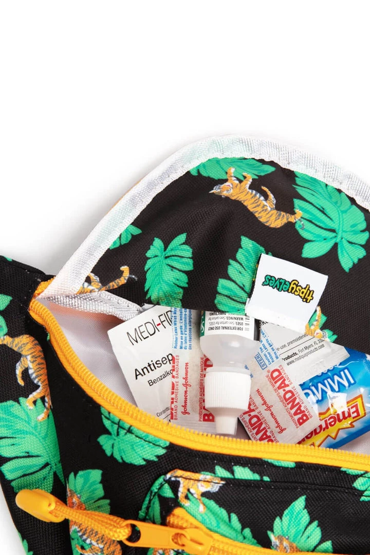 Calling all kings of the jungle! We wish we would have paired this big boy with a completing crown, but all royals know their true status. Show ’em who rules the jungle in the King of Tigers Fanny Pack with Drink Holder and Hidden Pocket! Featuring your wild, wild spirit animal and leafy botanicals printed all over, you won’t want to leaf this one behind this festival season.