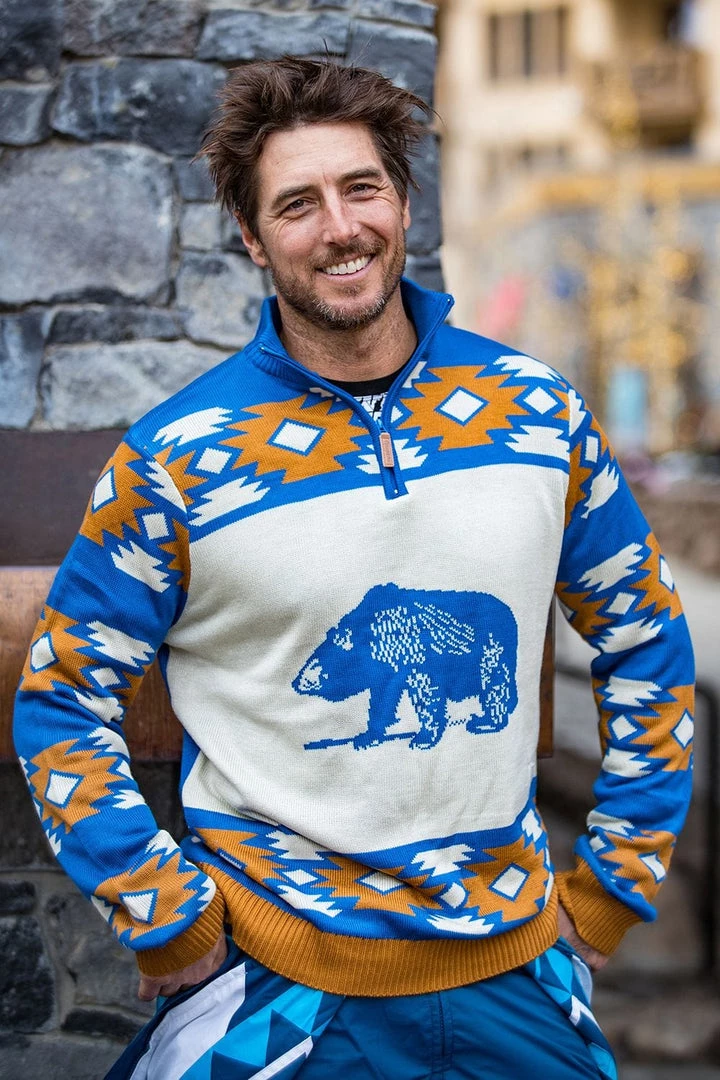 Gentlemen: looking to make an entrance this ski season? Make like our sponsored Olympic skier Jonny Moseley and wow the crowds with our Men’s Backcountry Sweater. This eye-catching Aztec bear design will not only turn heads, it will make you the most cultured skier in the room, so you can teach your army of fans a thing or two while you dish out the high fives. Hit the slopes or kick back in the ski lodge like an Olympian.
