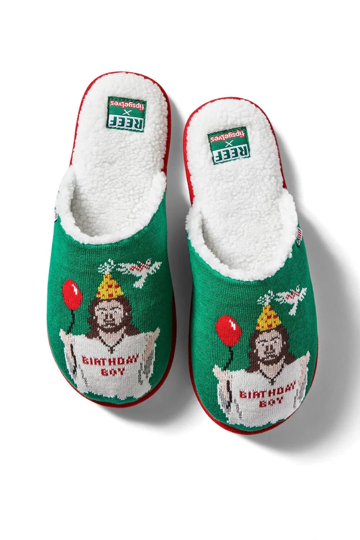 Finally, a birthday party we’re all invited to. FOMO isn’t possible when we can all get a slice of the birthday cake! Rock these Men’s Birthday Boy Reef Slippers to any Christmas event as a subtle happy birthday, not to mention the most comfortable way to enter any room. Forgot a present? Not a problem. The compliments you’ll get from these bad boys are enough distraction for any party-goer. Trust us on this one.