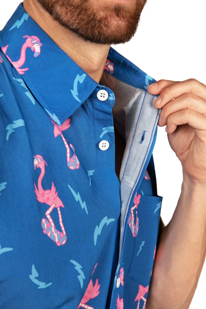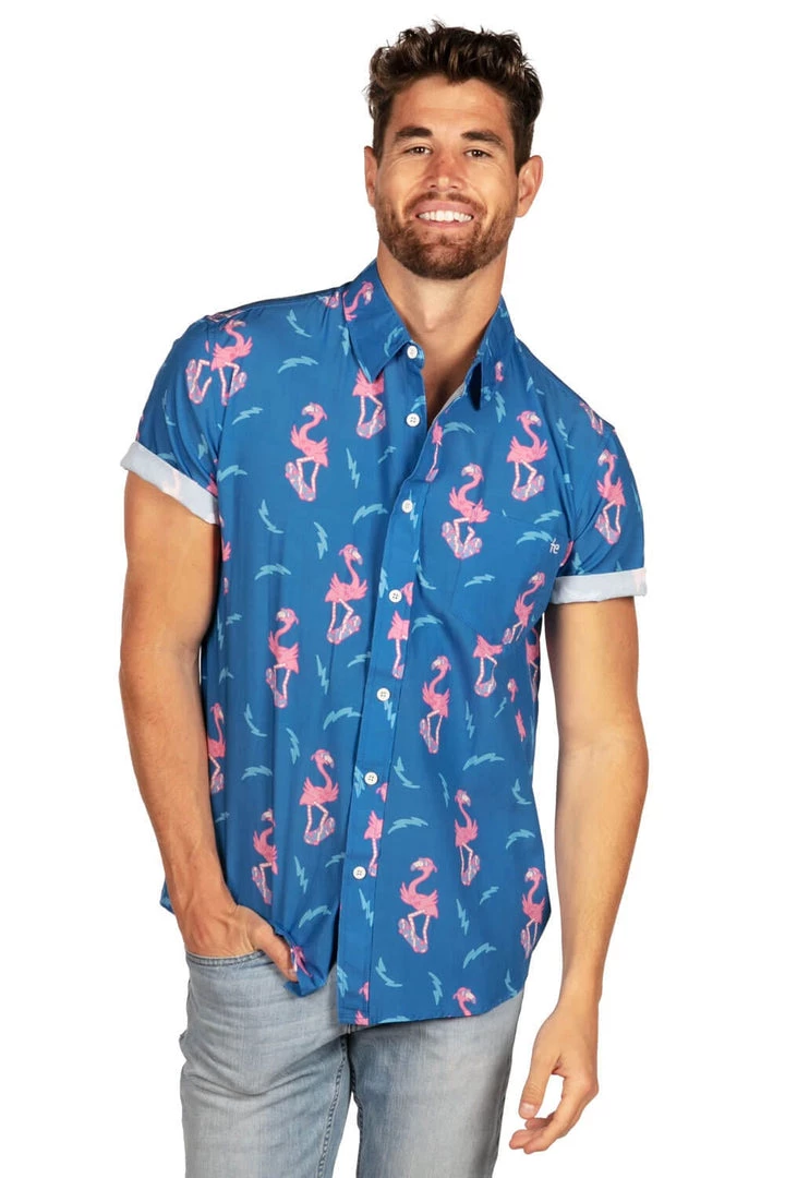 Here’s some career advice for you. Walk into your next board meeting and let ’em know simply, but firmly, that the bird’s the word. Write that down. Next tip, wear the ultra-rad Men’s Board of Paradise Hawaiian Shirt and let ’em know that you’re a professional when it comes to partying. The buttons are totes business casual, and the short sleeves let your forearms do the talking. Nevermind the all-over print of a flamingo that is absolutely shredding through life. This summer shirt says, “Raging is serious business. And business is good.”