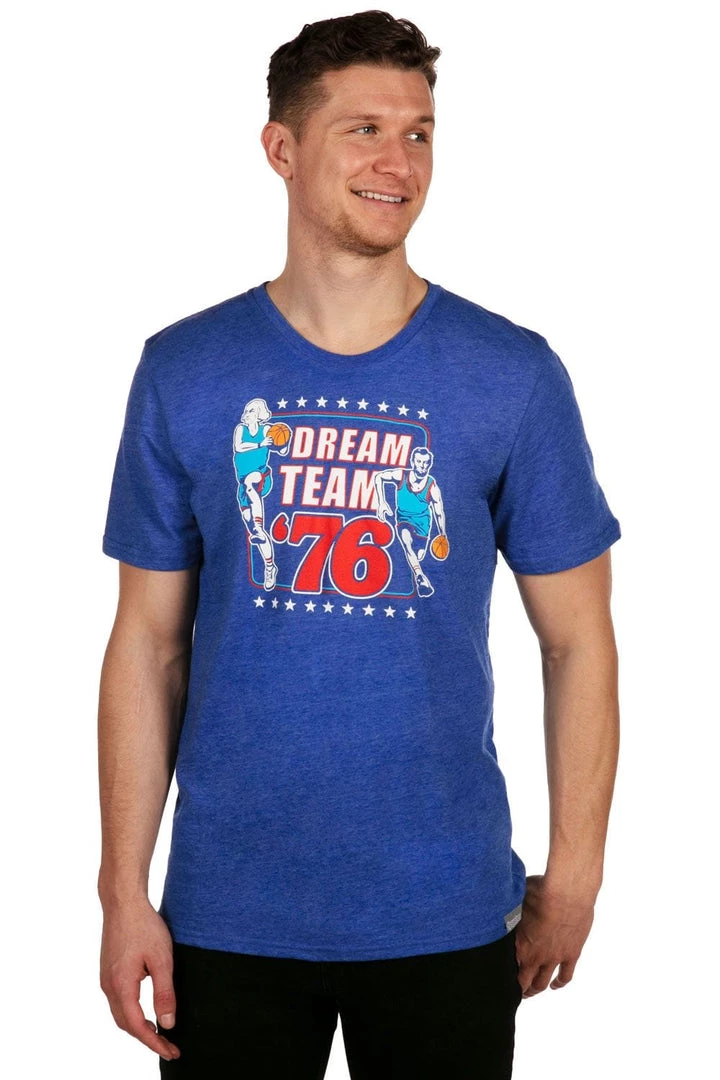 Looking for a fourth of July tee that’s a total slam dunk? Look no further than our Men’s Dream Team ’76 tee. For all of those old enough to remember those teeny tiny shorts, this is a nostalgic look back at our unstoppable Olympic basketball team. That’s gold medal-winning stuff.