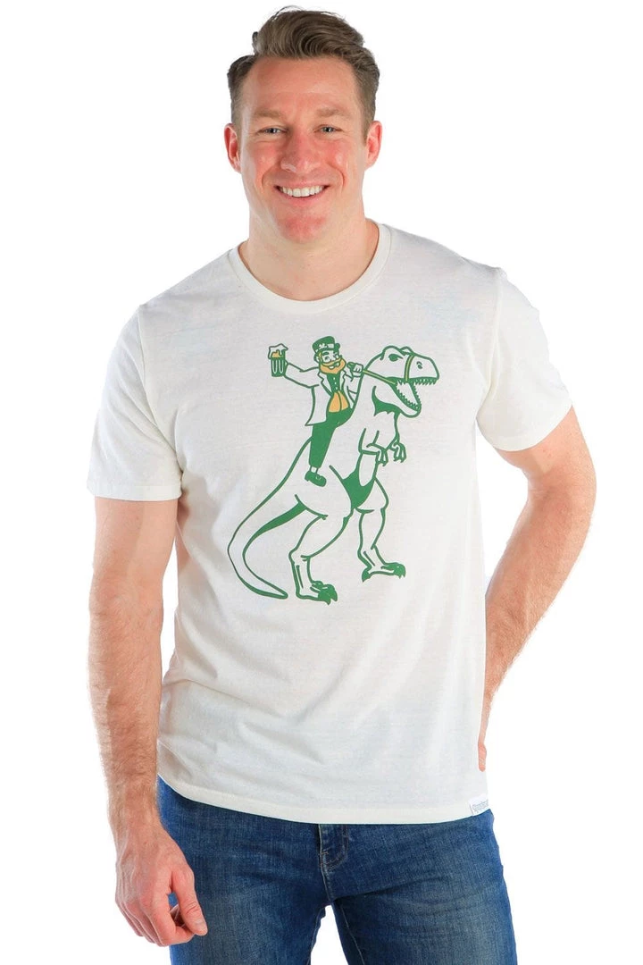 No, you’re not drunk. That really is a leprechaun riding a T-Rex. We’re not sure why, but we’re guessing his unicorn broke down. In any case, get your hands on one of our Men’s Dublin Dino Tees before they’re all sold out!