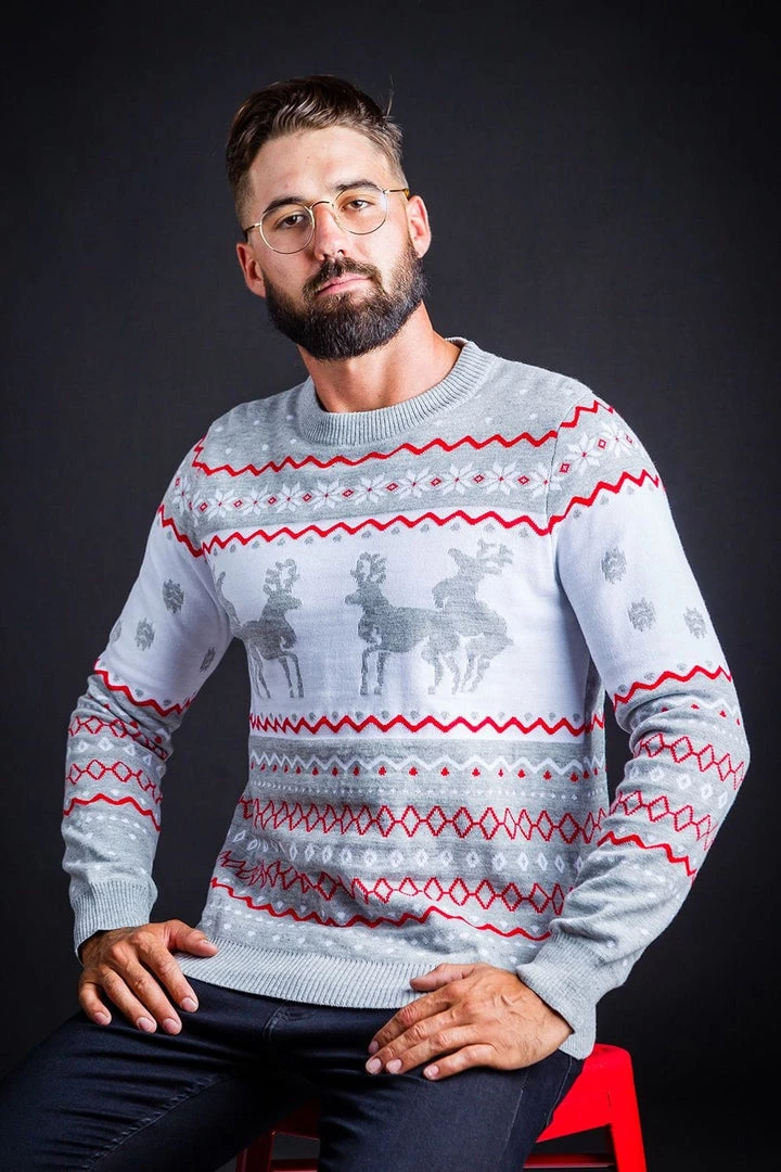 Tipsy Elves Men’s Grey Humping Reindeer Ugly Christmas Sweater