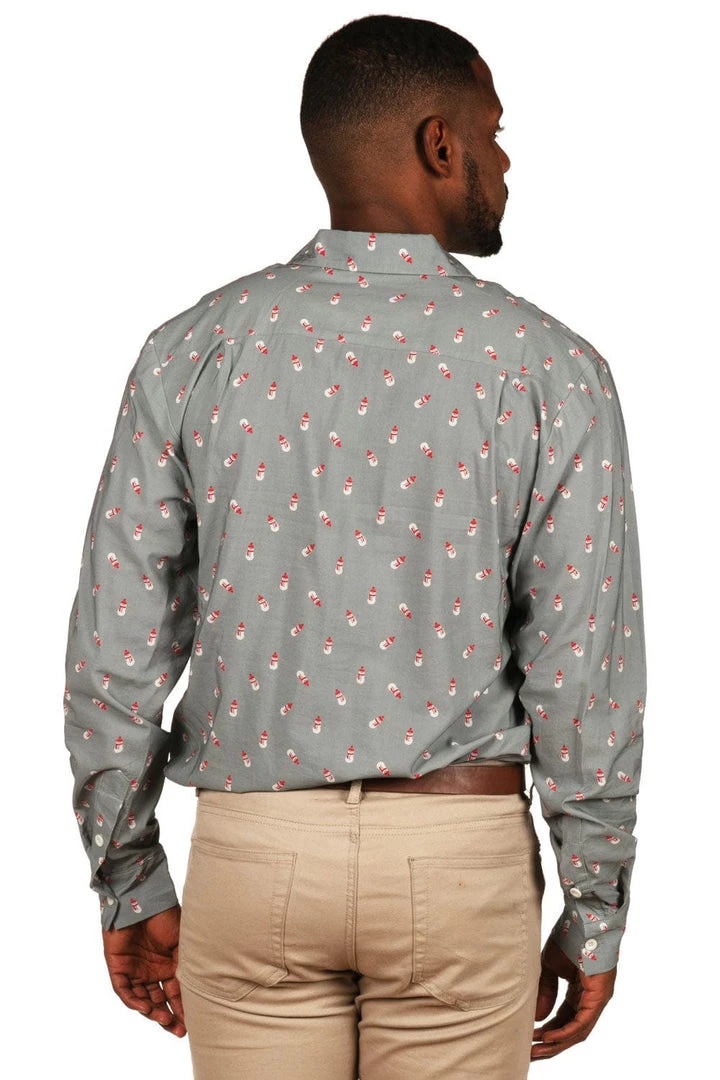 Tipsy Elves Men’s Grey Snowman Long-Sleeve Button Down Shirt