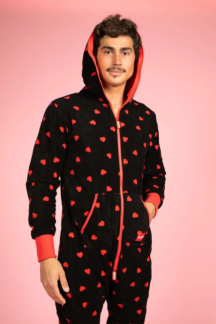 Tipsy Elves Men’s Hearts On Fire Jumpsuit & Gift Box