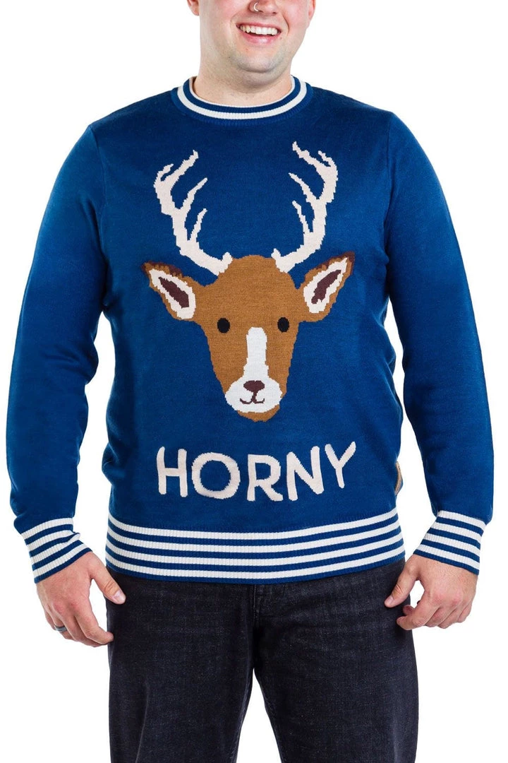 Tipsy Elves Men’s Horny As Buck Big And Tall Ugly Christmas Sweater