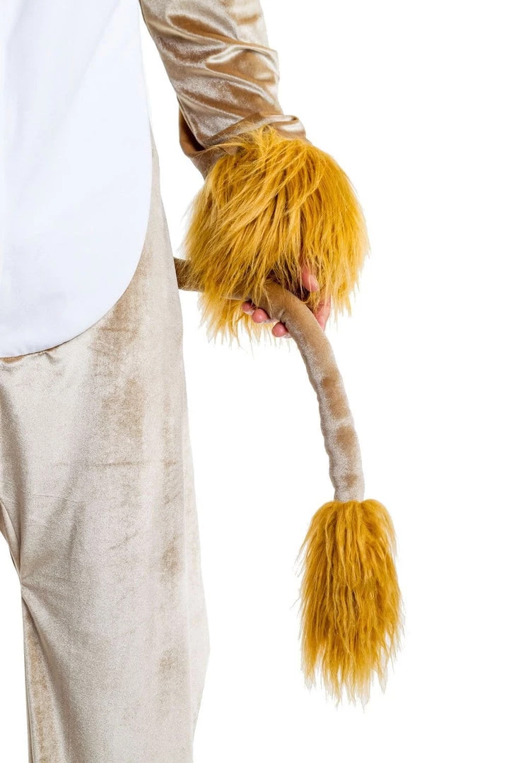 Anybody seen a tin man and a scarecrow lying around? No? How about a girl with crazy sparkly shoes? There’s no need to accessorize with this epic Halloween outfit. Our men’s lion costume has come fresh from the plains of Africa and it’s looking hot as hell. They only said Halloween had to be scary – nobody said anything about roaring, right? Ditch the hockey masks and scare them with your badass mane in this super comfortable men’s lion jumpsuit. You can lounge around all day like the king of the jungle, then strut your stuff by night. It’s roomy enough to move around, hunt for candy, or whatever it is you lions do. What’s more, it’s also got the essential front zip for when Mr. Lion needs to make an appointment with the porcelain god. You can even get away with it to go trick or treating. No cowards here.
