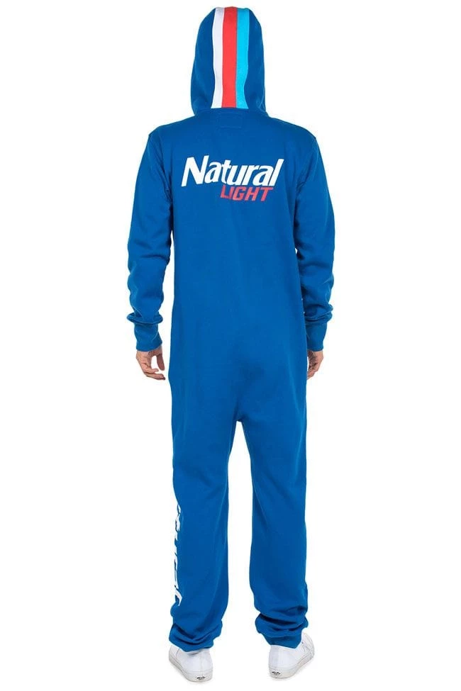 Are you tired of the boring, non-alcohol-related clothing in your closet? Then you need to kick things into high beer with this Natural Light onesie. While you want to keep your brewski nice and cold, you want to keep your body cozy and warm. Get an ice cooler for the beer, and get this cool onesie for your bod. Officially licensed Natural Light jumpsuit.