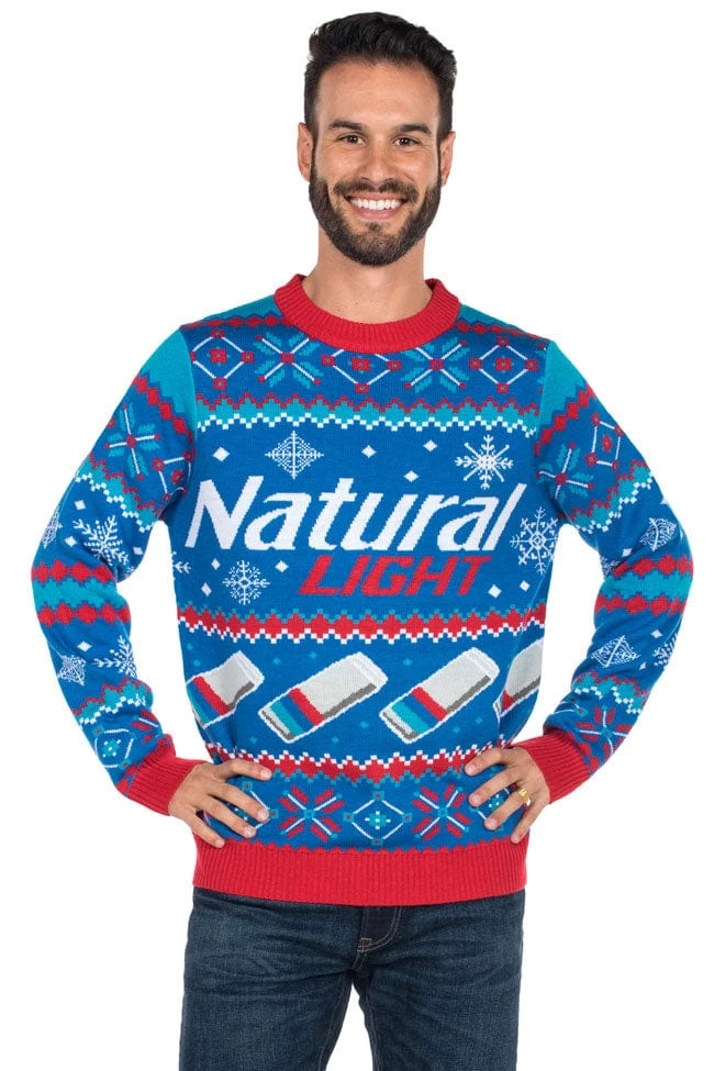 Want to look Natty this winter season? Let your light shine in this tacky Christmas sweater celebrating the beer that everyone mocks but secretly buys in bulk because it’s just so dang affordable. Just beware, folks at your next party will expect you to be the guy who goes on a beer run, because this is practically the uniform for that gig.