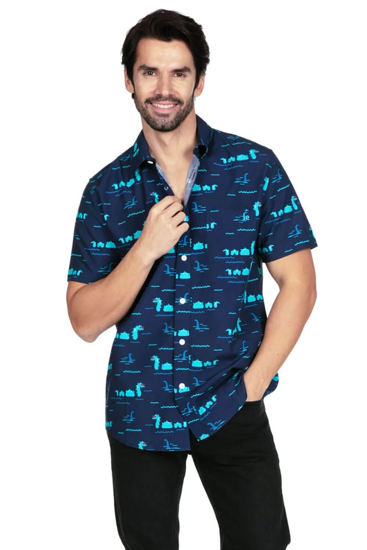 Even a lake monster needs to get lei-ed every once in awhile. That’s why ol’ Nessy heads to the islands for a summer retreat. Now, you can have all the monster vacation vibes with the Nothin’ But Nessy Hawaiian Shirt. It’s a stretchy, comfy, stylish shirt that proves you’re a deep sea monster babe magnet. So be like Nessy, rock the Nothin’ But Nessy Hawaiian Shirt, and have summer on loch(ness).