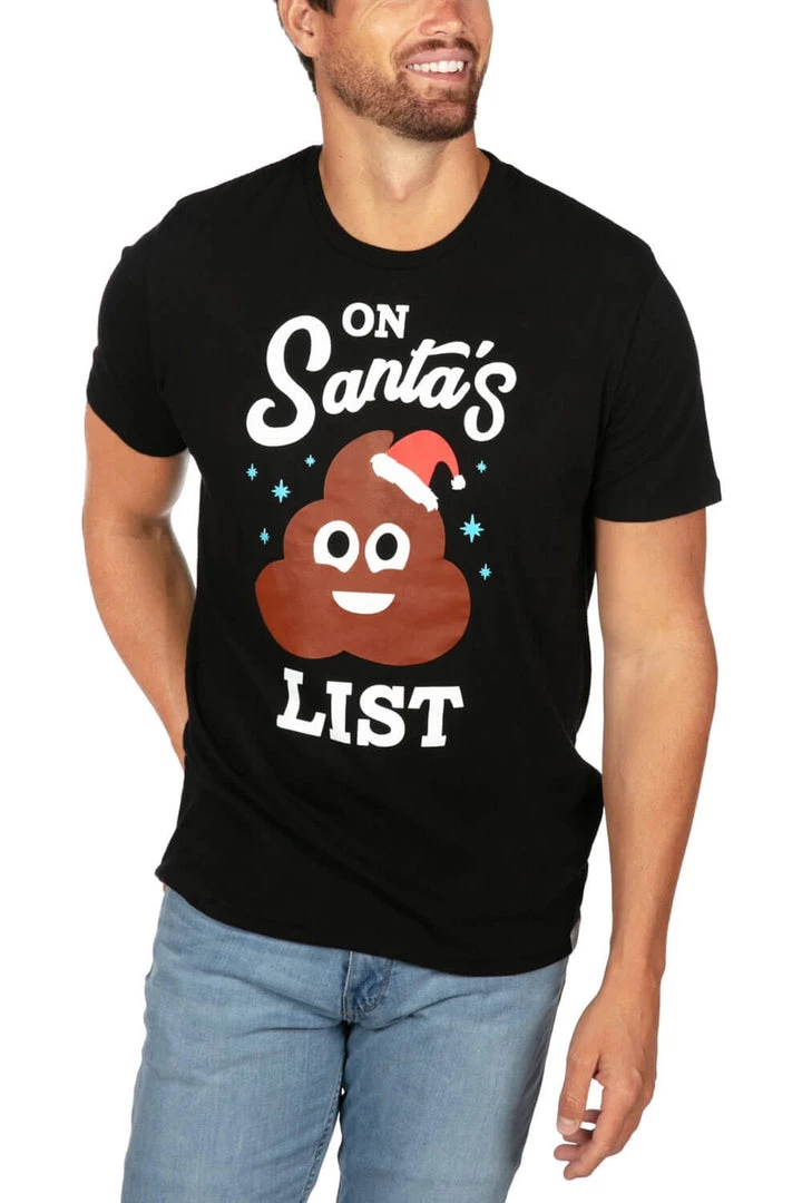 There’s the Naughty List. There’s the Nice List. And then there’s – this list. Who knew Santa was able to hold a grudge? This Men’s On Santa’s Sh*t List t-shirt let’s you acknowledge that you hold membership on one of the least desirable lists in the history of the world. But you know what? You’re straight up OWNING that status. No wonder the little piece of poop is smiling on the shirt. He’s happy go #2 lucky.