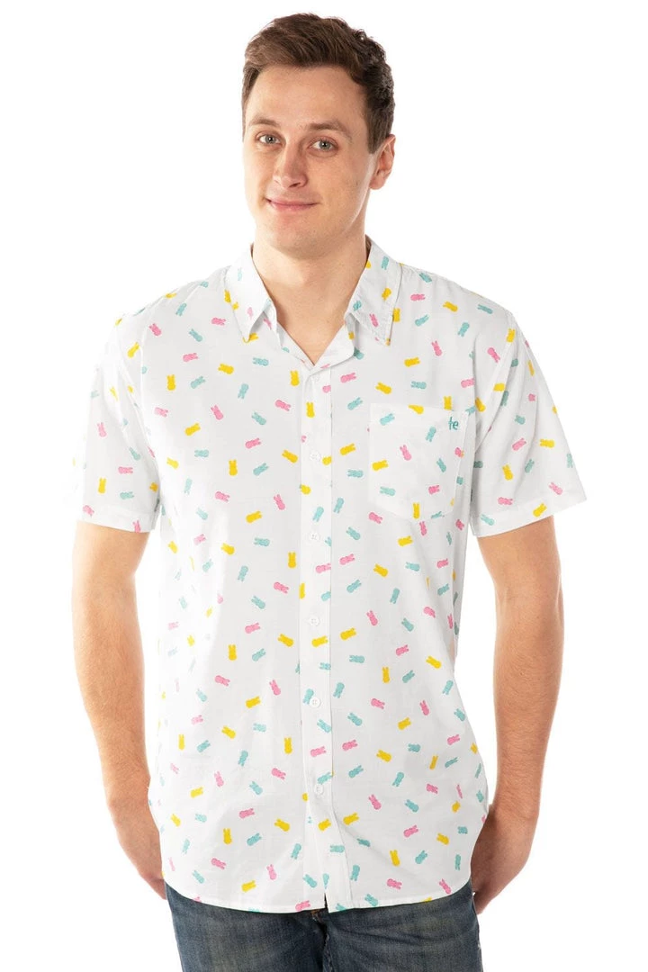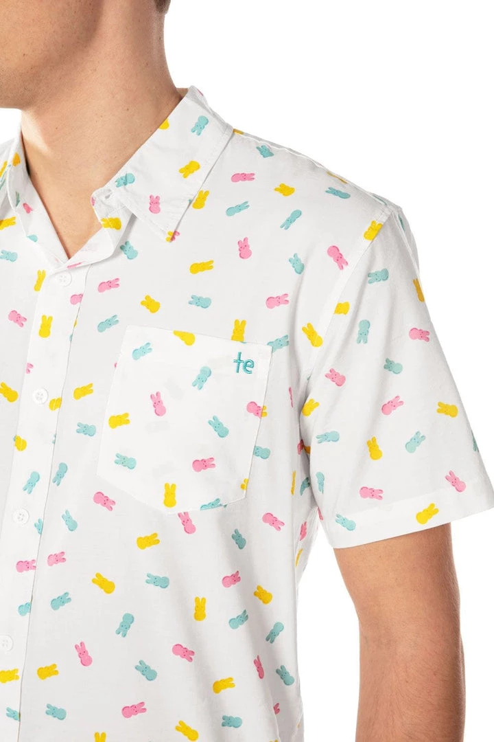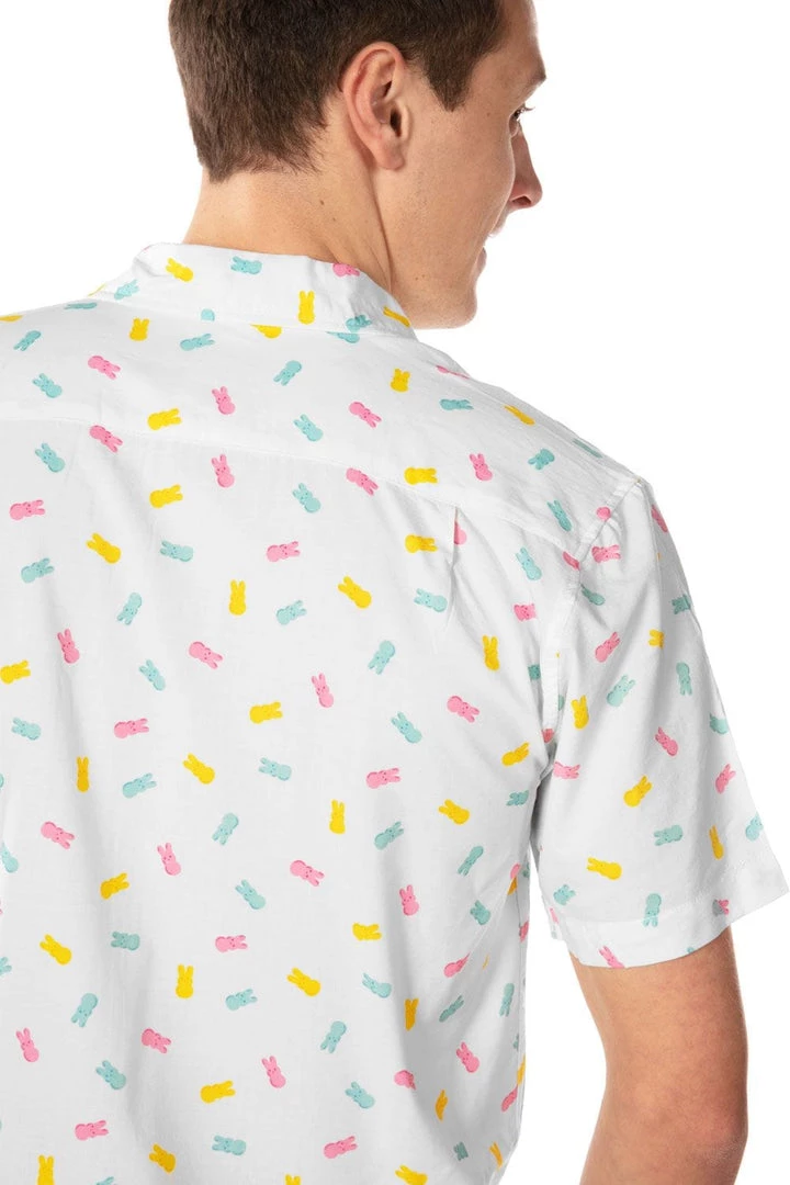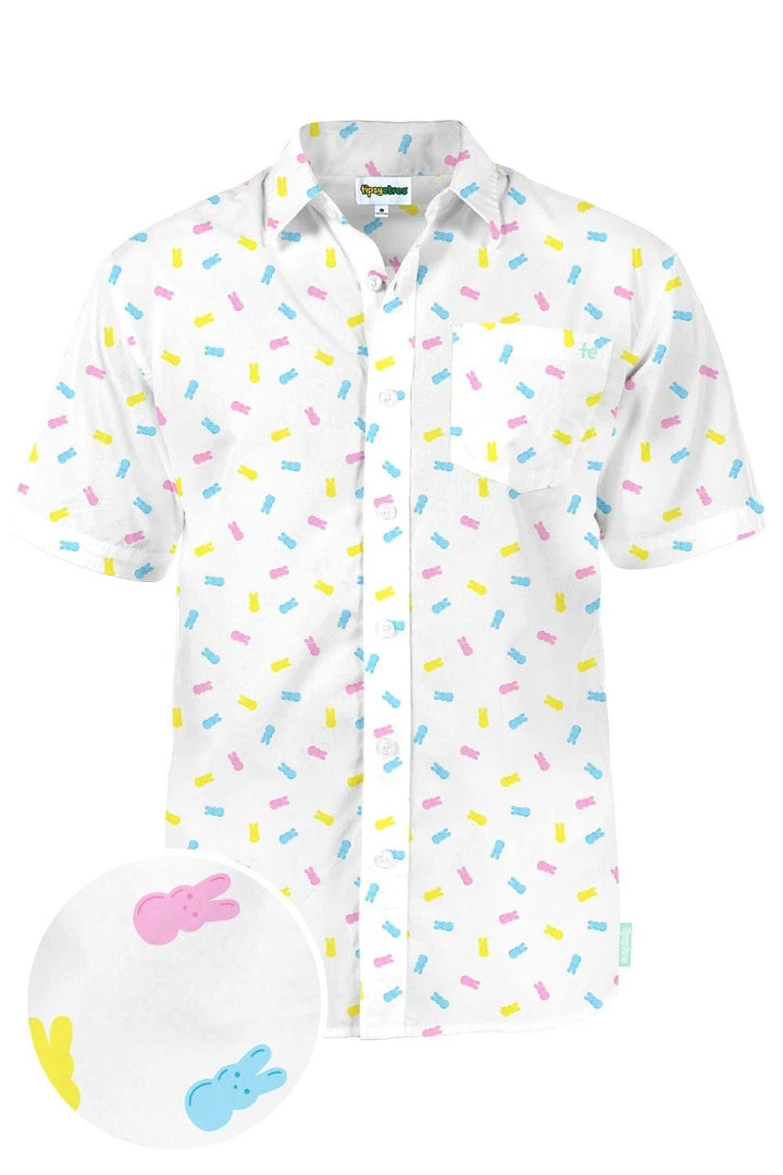 Tis the season for all the sweet treats. Work on those cavities with this Men’s PEEPS Party Peeple button down shirt. Featuring thousands of your favorite bunnies, it’ll give you a sugar high just looking at it. As if those guns weren’t enough to make your buddies pass out. Stud.