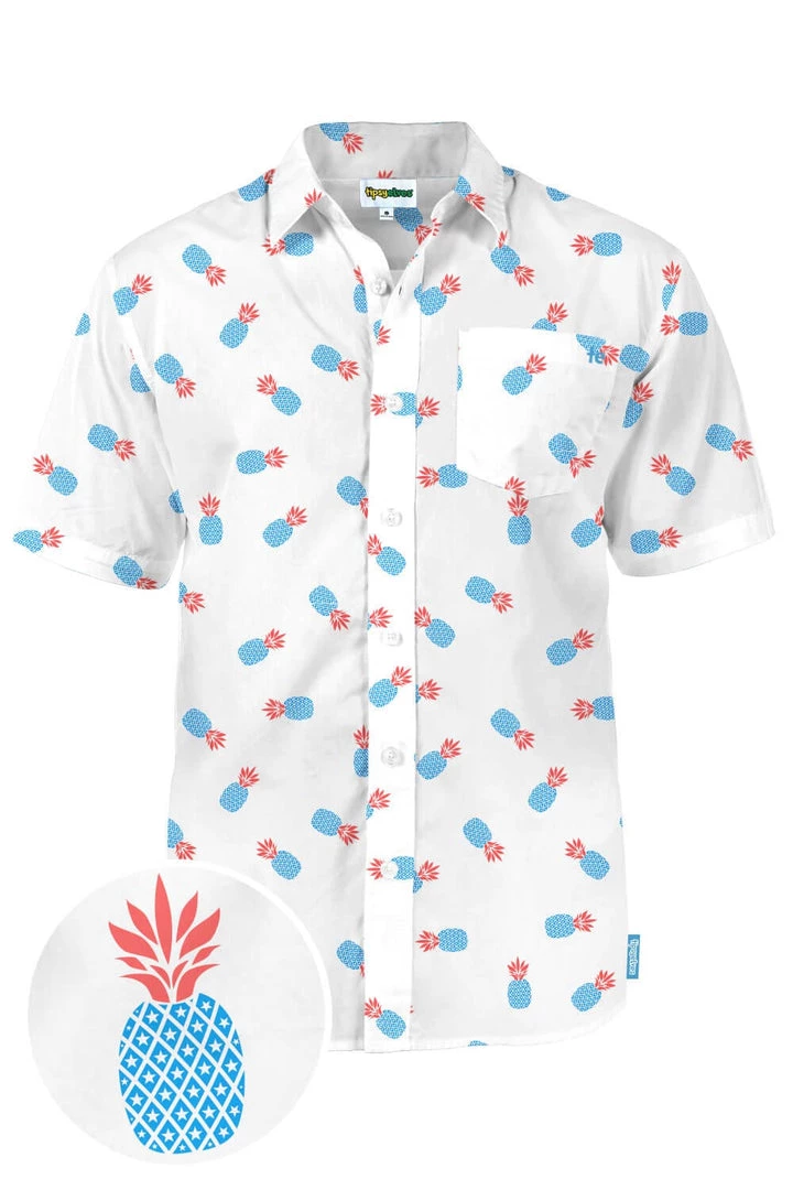 Tipsy Elves Men’s Pineapple Patriotism Button Down Shirt Patriotic