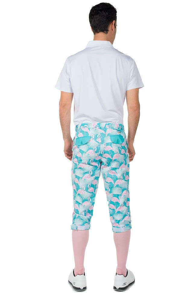 A little birdie told us that you like pink flamingos. So, we put a flock of them on your golf knickers. Now, you can brave the tropical heat on your favorite course in the Caribbean or (in South Florida) without getting your feathers ruffled. And yes, those pink socks will make you feel like strutting and preening just a bit. Pink golf socks are included!