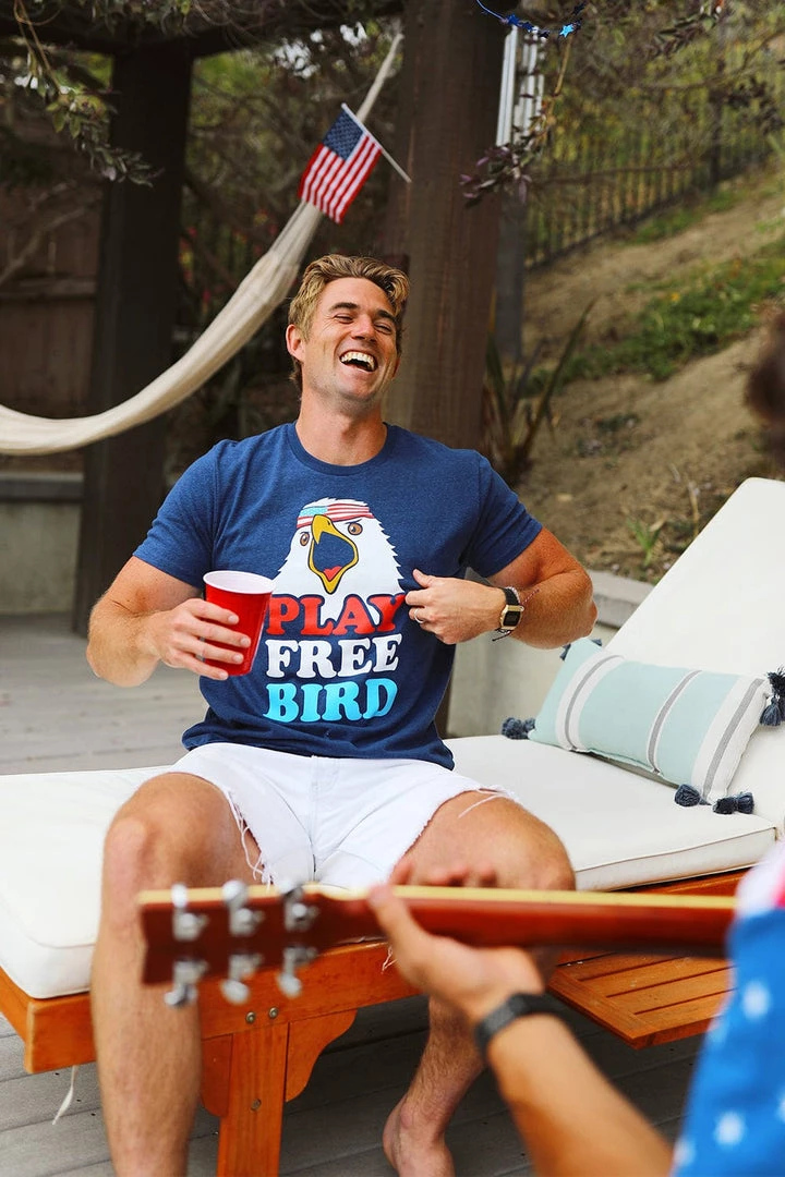 Just how free can you get? Snag the Men’s Play Free Bird t-shirt for the 4th of July so those forearms are free as a bird to hold beers, party, or just fist pump to your heart’s content. Perfect for concerts, cook outs, or wearing around the house with the volume up. Because America goes to eleven, just like you.