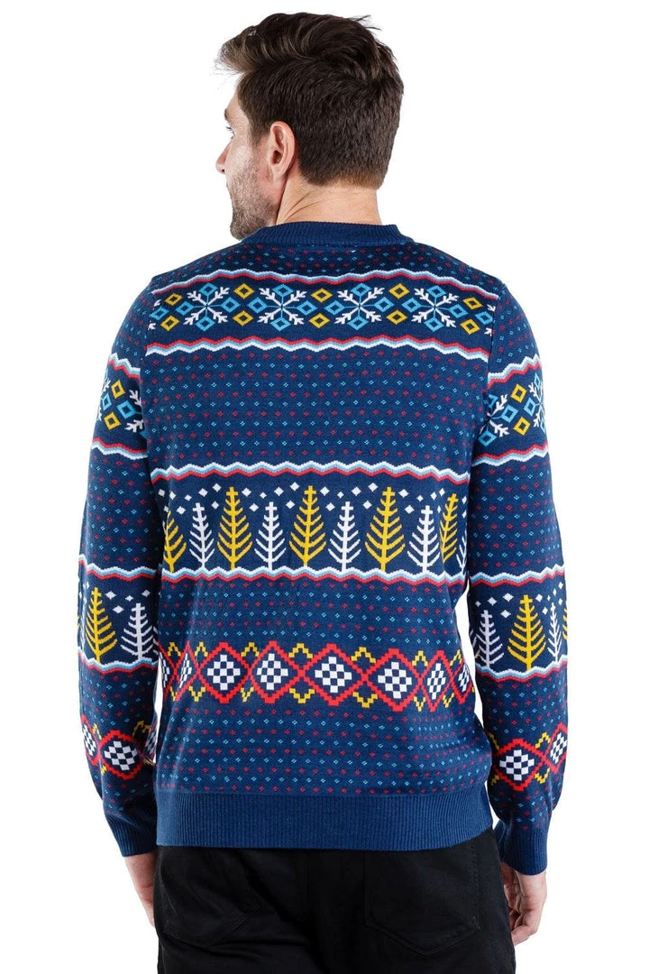 Who said we humans get to have all the fun? This year, party like a polar bear with our Men’s Polar Bear Party Ugly Christmas Sweater. This cuddly festive one-piece features our North Pole-dwelling friends raising a toast. They’re even doing it in Santa hats. Who needs to get hat hair when your sweater can wear the costume? It’s safe enough to wear in front of Grandma thanks to the Fair Isle pattern. She’d have to squint to see the underage polar drinking anyway. Rock up to the office Secret Santa in this toasty sweater. (See what we did there?)