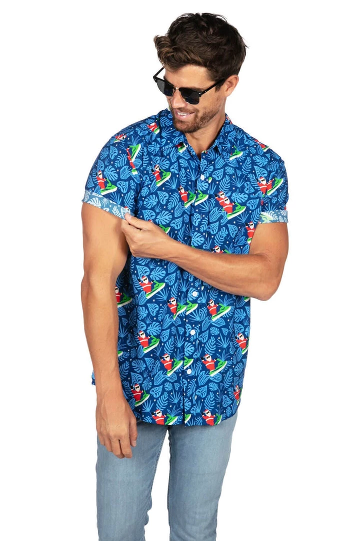 Tipsy Elves Men’s Santa Jet Ski Button Down Shirt