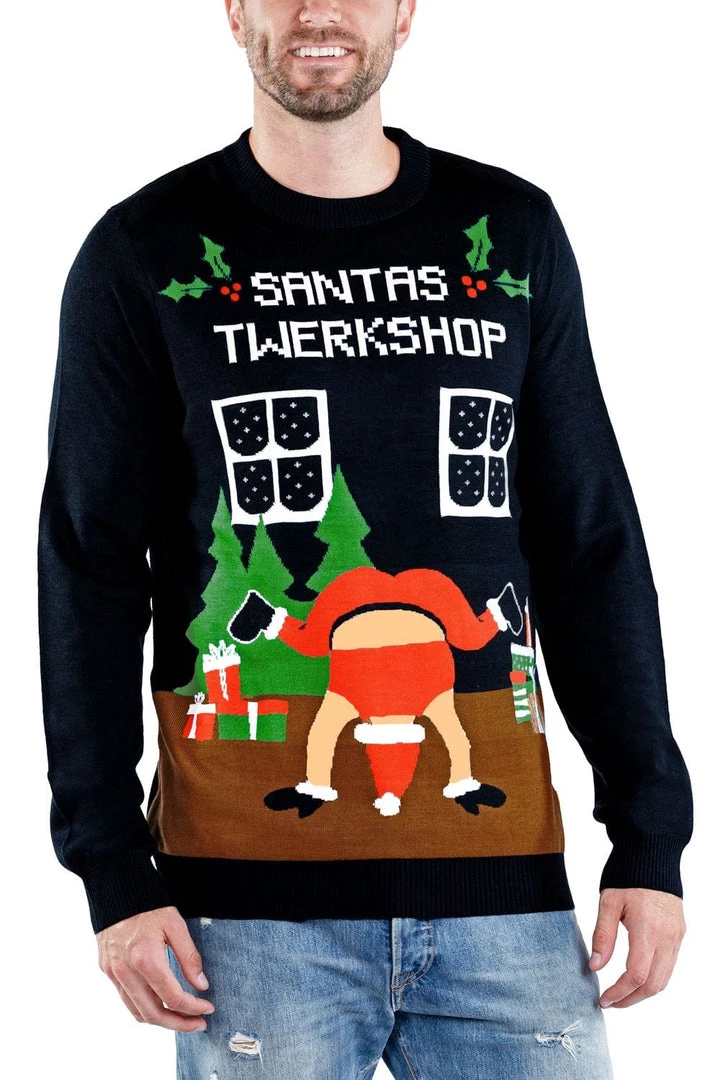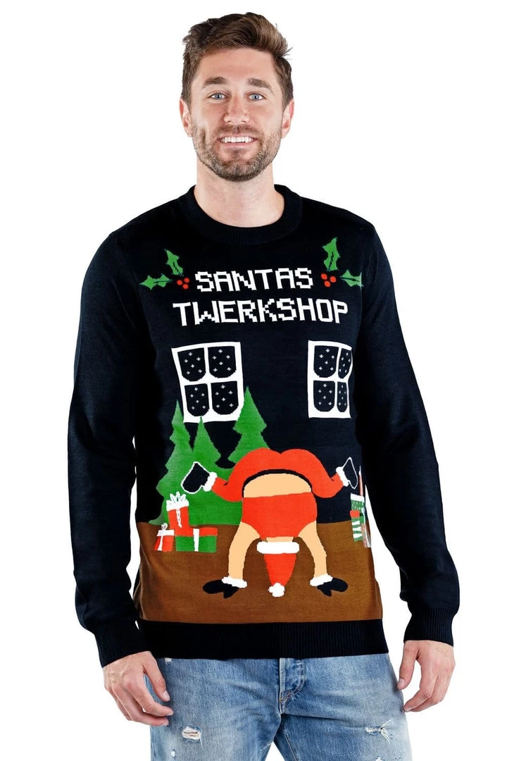 Tipsy Elves Men’s Santa’s Twerkshop Ugly Christmas Sweater