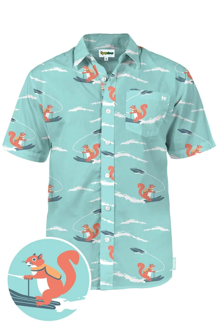 Tipsy Elves Men’s Squirrel On Water Skis Hawaiian Shirt
