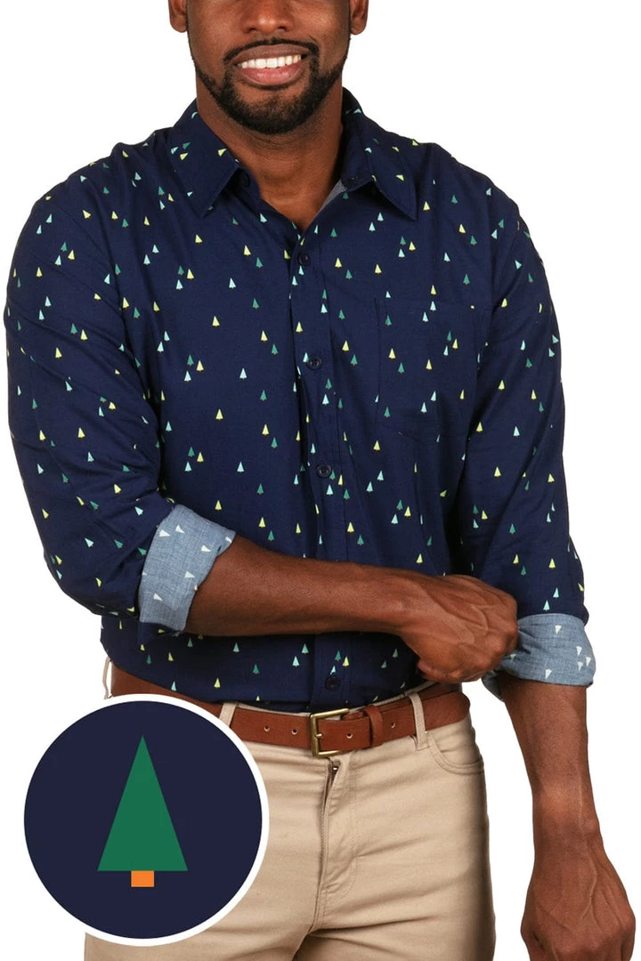 Tipsy Elves Men’s Tree Time Long-Sleeve Button Down Shirt