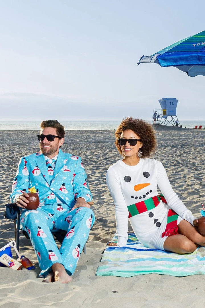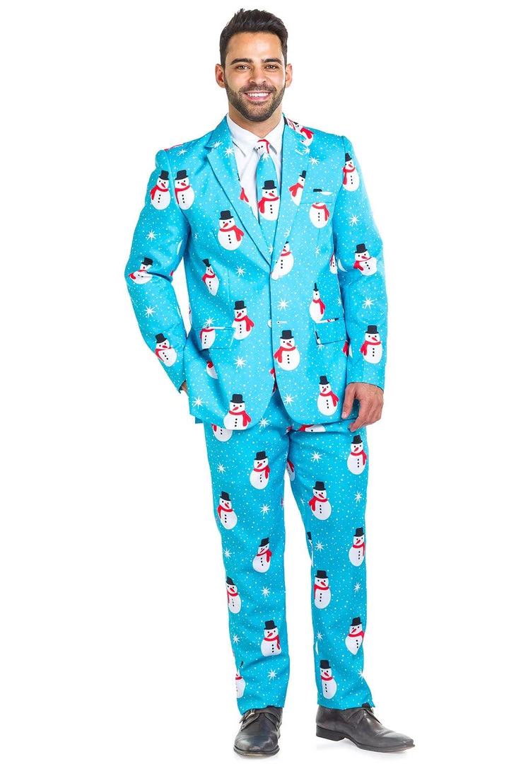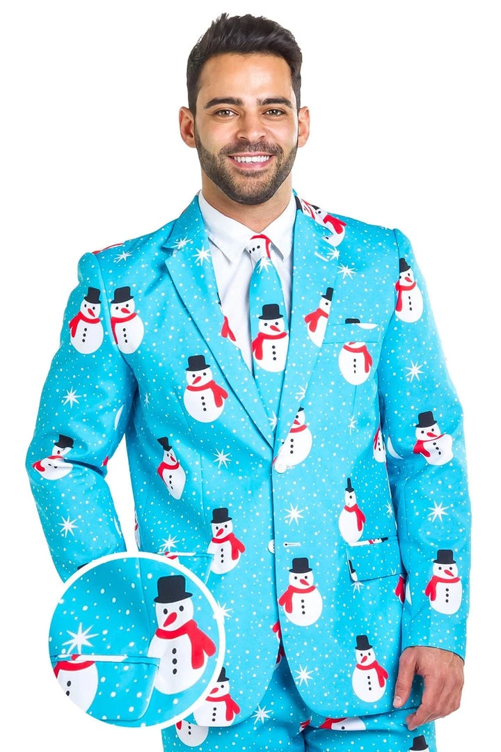 You’ll feel like a rock star in this super-cool aqua blazer and pants, where snowman stands alone. We believe it takes a village to raise a snowperson, and the Tipsy Elves village is so big that we were able to band together and create a flash mob of the frosty little friends to decorate this eye-catching winter suit. (Matching pants are sold separately)