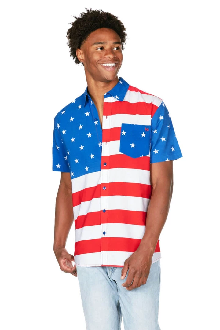 Tipsy Elves Patriotic Men’s American Flag Button Down Shirt