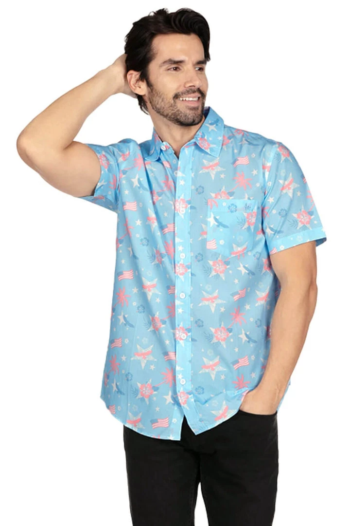 Tipsy Elves Patriotic Men’s Island Of The Free Button Down Shirt