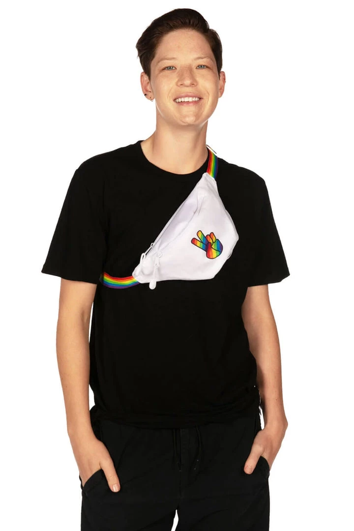 Rainbow belts are awesome, because they go with anything. And when you have a fanny pack, anything can go with YOU. I think we’re onto something here with the Rainbow Peace Fanny Pack. So while everyone’s staring at your fanny this Pride Month, your pack can carry your snacks, your glitter, your chapstick, your cash, and a whole bunch of LGBTQ+ pride. Carry on, stay extra.