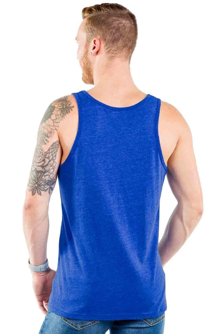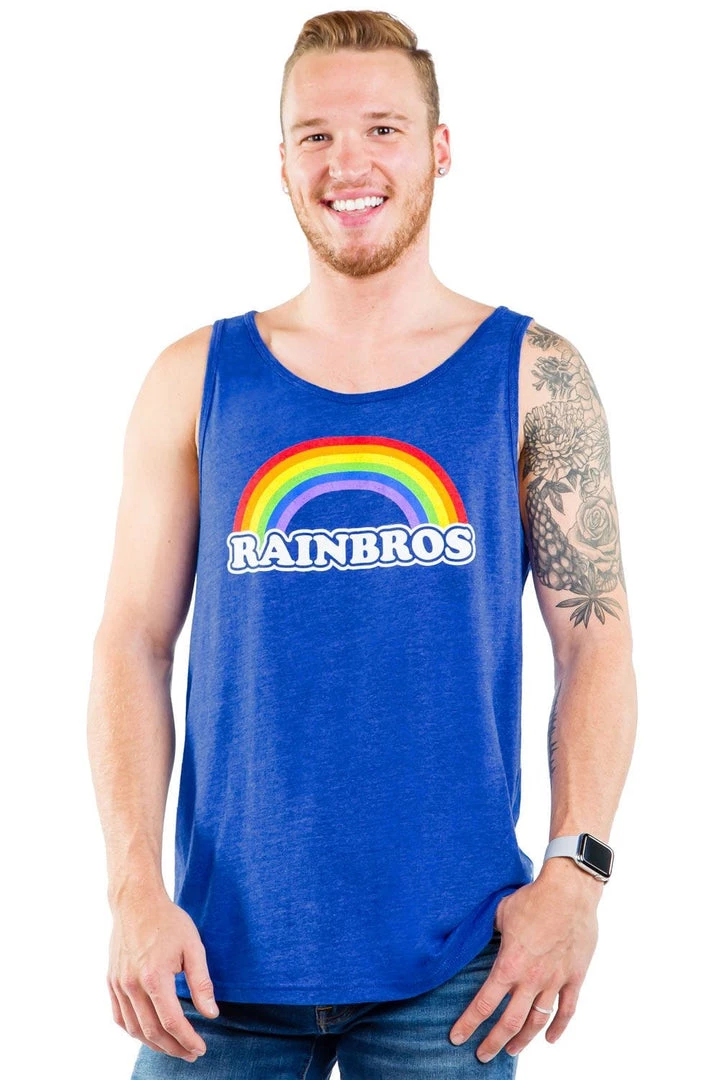 Somewhere over the rainbow blue birds fly and well-dressed people gather to celebrate their sartorial sass. The Blue Rainbros Tank Top, available in electric blue with an eye-catching rainbow design, showcases your solidarity.