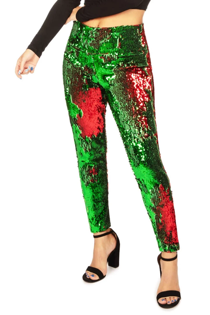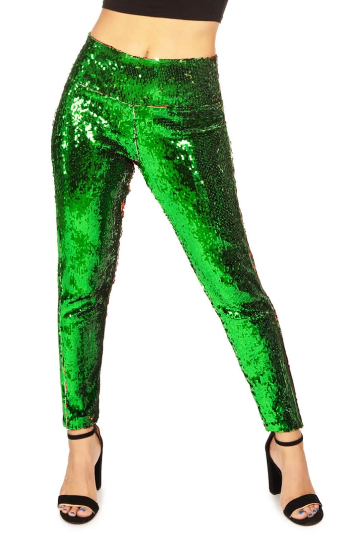 Tipsy Elves Red And Green Reversible Sequin High Waisted Leggings