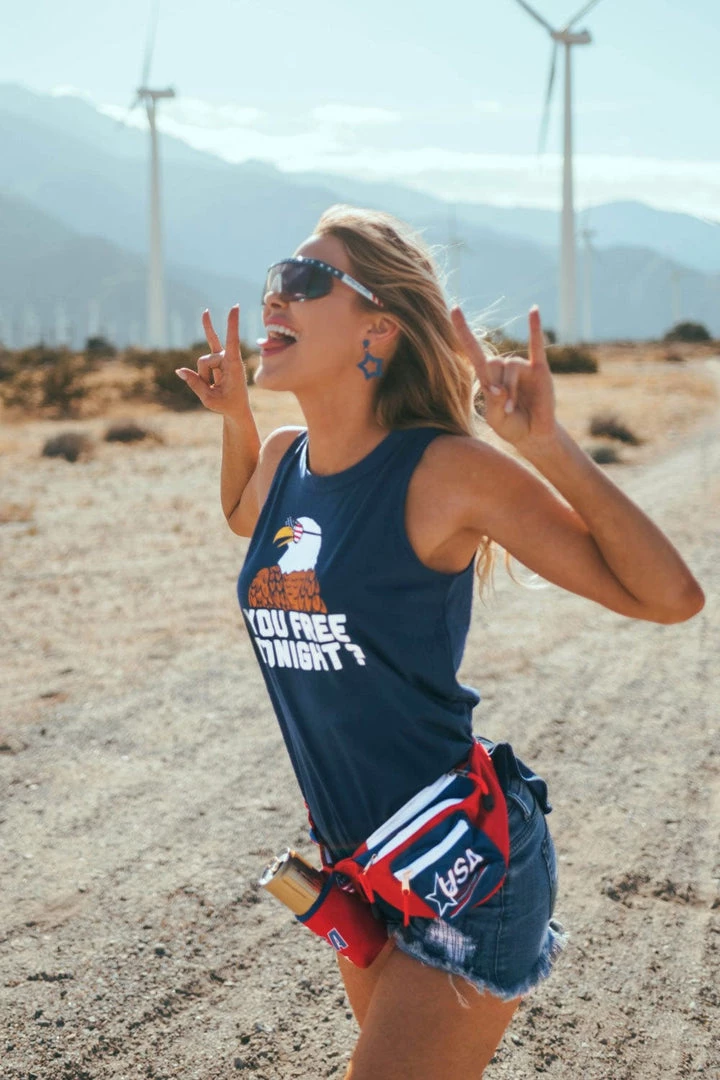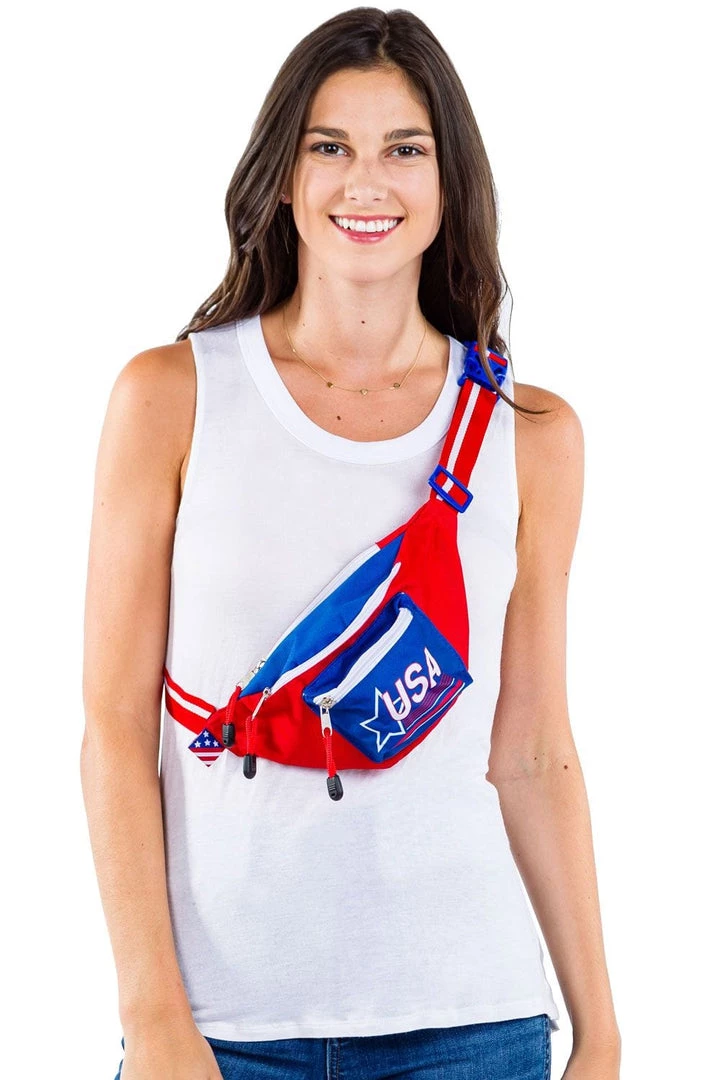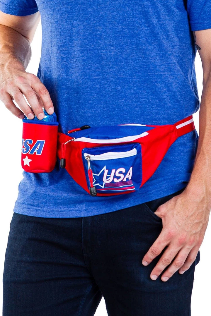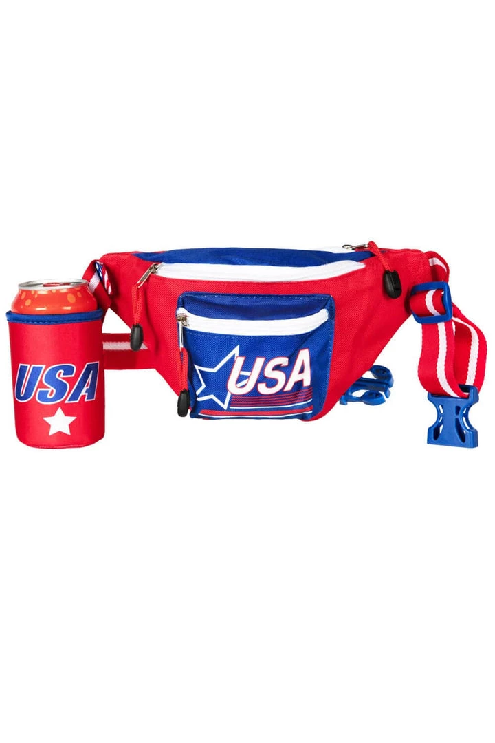 Tipsy Elves Red USA Fanny Pack W/ Drink Holder Patriotic