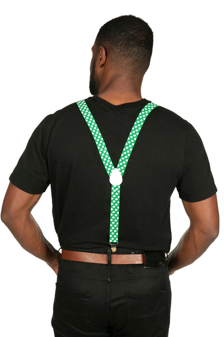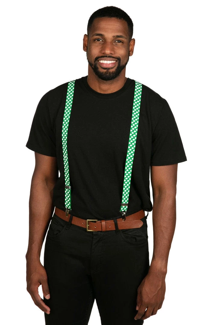 Your beer is your buddy, but the beer belly isn’t your favorite. Hold it all in place with the Shamrockin’ St Paddy’s Suspenders! Featuring white clovers dancing over a classic St. Patrick’s Day green, they’re as fashionable as they are practical.