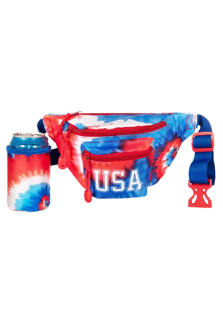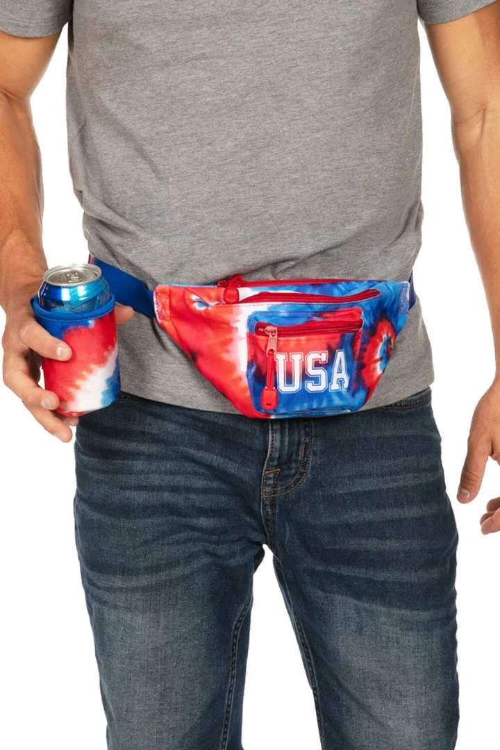 Tipsy Elves Tie Dye Fanny Pack With Drink Holder Patriotic