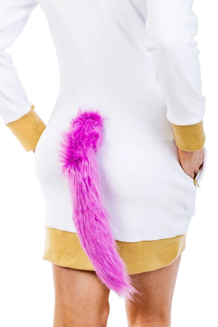Want to look angelic this Halloween without resorting to a pair of mouse ears? Try the women’s unicorn dress, which offers a floaty and comfortable alternative that won’t have you freezing your horns off. This girls’ unicorn costume is also available as a body suit, but if you’re looking for a more relaxed fit that you can lounge around in the next day, the unicorn dress is for you. Keep the hood down and it’s any other casual autumn dress with a hint of sparkle. Pull the hood up and watch the transformation: this unicorn dress comes with its very own horn and even a princess crown, so you can show your party guests who’s in charge. Bright, flirty and colorful, this fantastical one-piece comes with one large zipper from chest down to the hem of the skirt, allowing you to jump in and out easily like a racing pony.