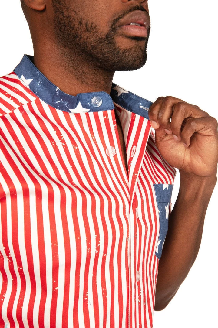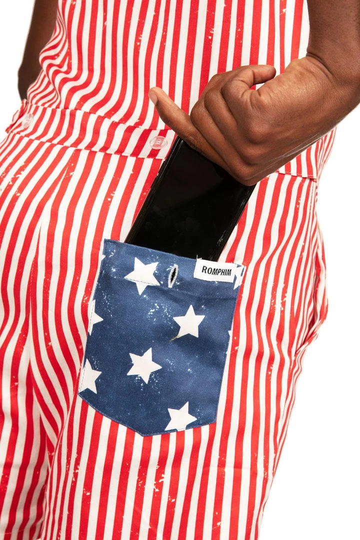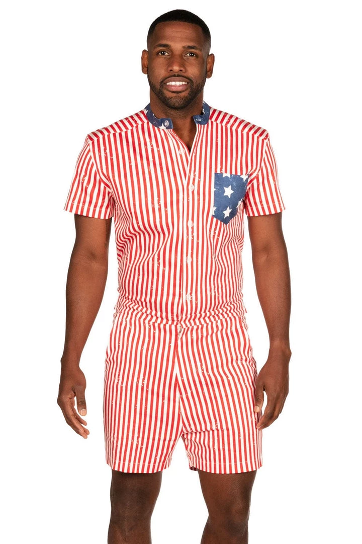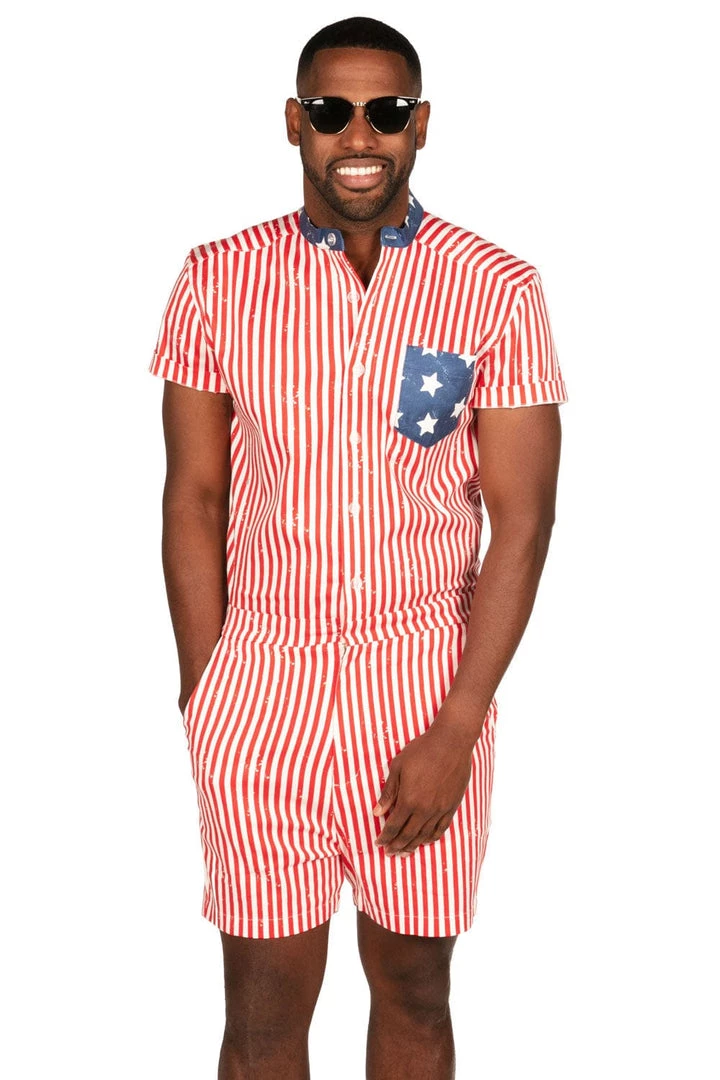 Land of the free, home of the legs. Show off the best country along with the best calves in the Men’s USA Romphim. Complete with a white and red party-ready pinstripe and a star spangled chest pocket, it’s the year’s only acceptable BBQ look. And by this year, we mean every year. Shorts and stripes never go out of style.