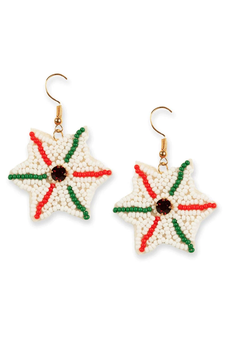 Tipsy Elves Women Beaded Snowflake Earrings