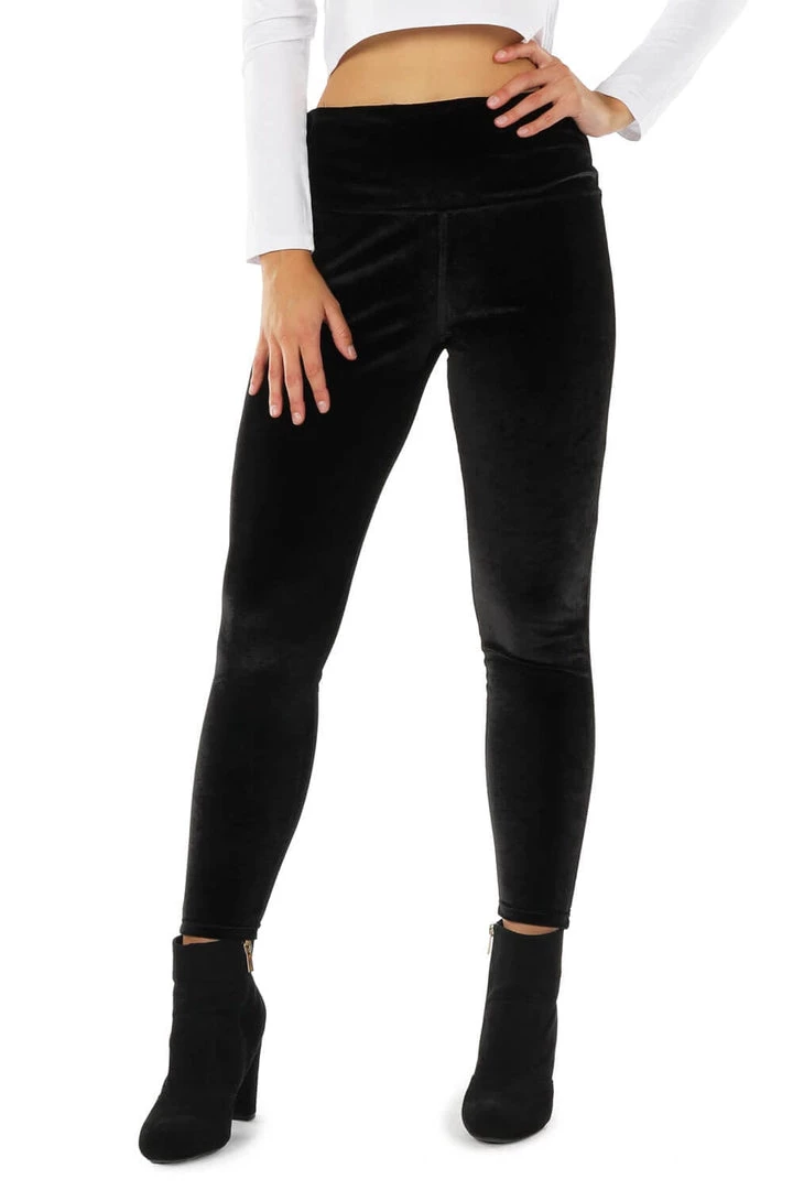Tipsy Elves Women Black Velvet High Waisted Leggings