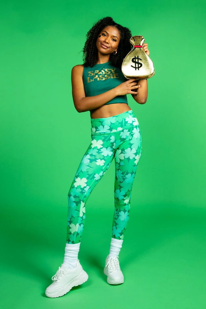 Picture this: you’re in a warm field of grass and clovers, basking in the sunshine. You begin to hunt for the elusive four-leaf clover, when you realize – the entire field is full of shamrocks. Not a single un-lucky leaf in the batch. You wake from your daydream to realize…it’s just your legs, wrapped in the Women’s Clover Field High Waisted Leggings. They’re so comfy, though, you can’t be mad about it.