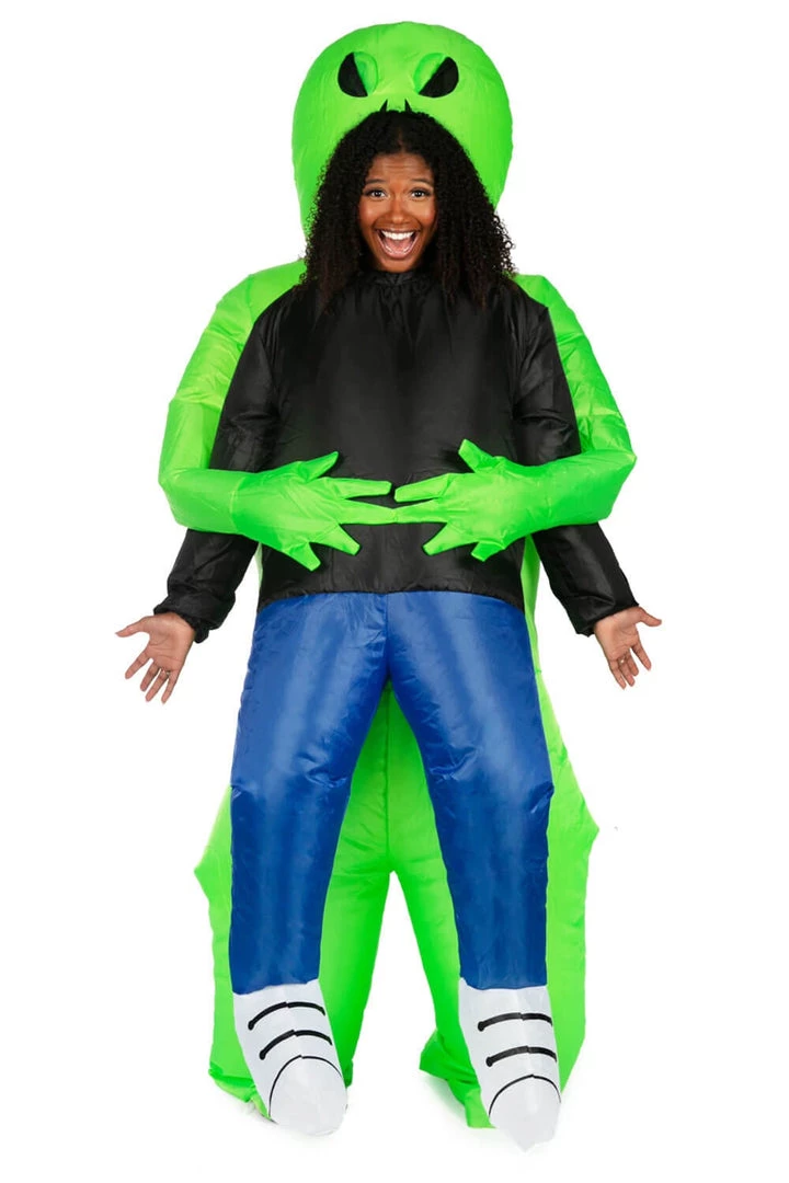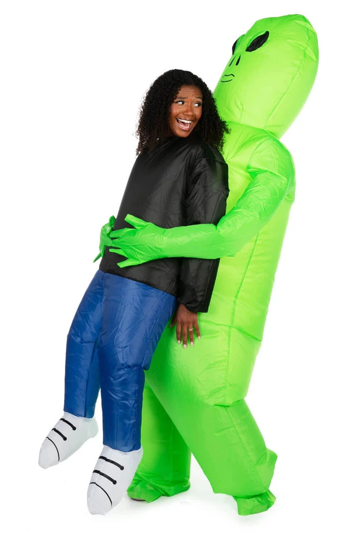 Behind every great woman is not a man. No, it’s a green alien that imbues her with incredible powers. Welcome to the Women’s alien Abduction Inflatable Costume for Halloween. A one-piece inflatable costume that lets you walk around with an extraterrestrial behind you, it’s the only costume that’s as extra as you are. BURN. Step into this and watch your alien in shining armor inflate to epic proportions. Finally, a guy that’s as tall as he says he is! Standing tall, he’ll carry you all over town like a complete alien gentleman, and he won’t even talk about how he used to play baseball in high school. Wear this out trick or treating with the kids or to your Halloween bash and be the life-from-another-planet of the party. The women’s alien Abduction Inflatable Costume is the ultimate blow up costume for Halloween, and also provides an instant date.