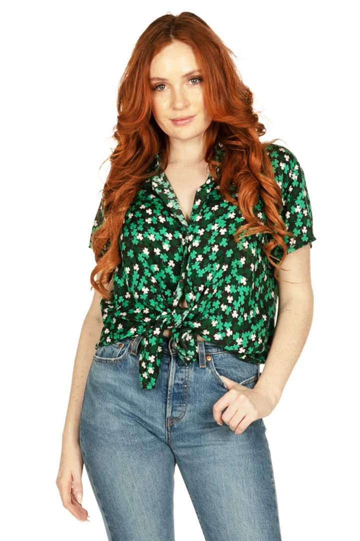 Tipsy Elves Women’s Clover Floral Button Down Shirt