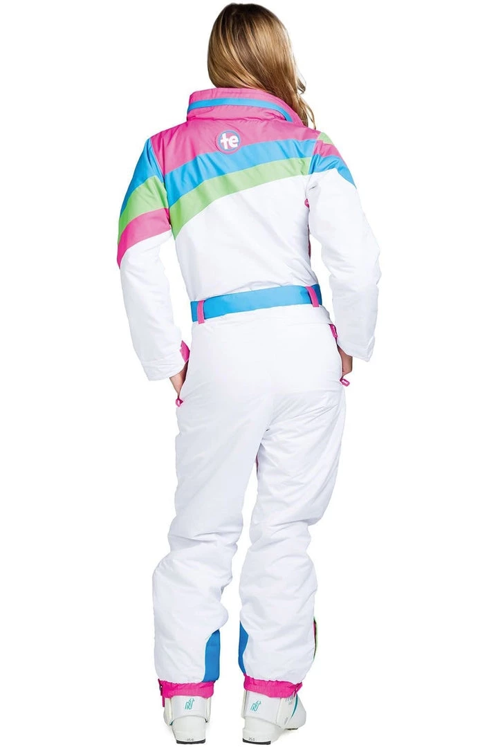 Dressing in white has never been a better idea – in this Women’s Dayglow Ski Suit, your ski buddies might just be blinded by the light, but it will all be worth it. Hit the slopes like a lightning bolt in this white striped all-in-one, featuring ventilated zippers and waterproof material to keep you looking as good as you feel. With superior warming technology, you’ll turn the heat up on the black diamonds while wowing in white.