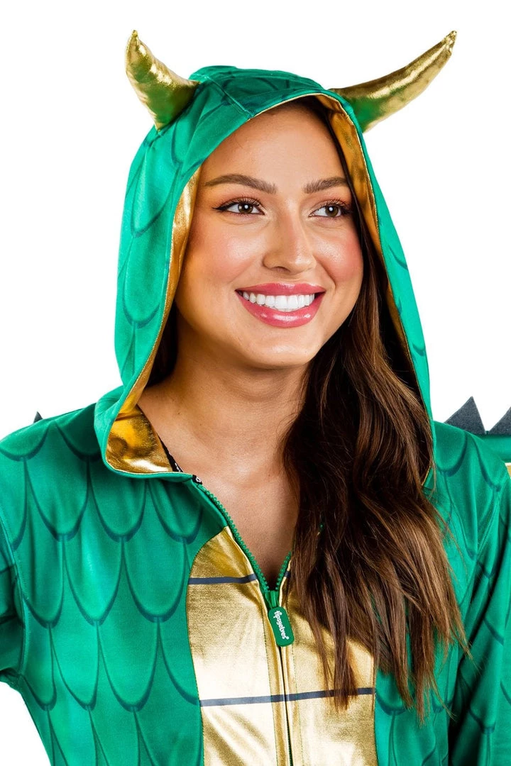 Play with fire and you’re gonna get burned. The mother of dragons is here and she’s taking no prisoners. Our women’s dragon costume is scarier than a mouse and looser than a catsuit. What more could you want? Embrace the nerdy fantasy of breathing fire on your enemies with this super cute jumpsuit. It may look scaly, but we promise it’s warm and fuzzy – great for taking to the streets with trick or treat. Rocking it at a Halloween party? First prize is yours thanks to the incredible attention to detail. It’s got jagged wings, dragon horns, and even a tail if you need to take someone out quickly. Great for the bathroom queues. This green one-piece will allow you to move around freely, and you can even fill it with Halloween candy. There’s no guarantee it will make you glide around castles, but we know you’ll look pretty fly.