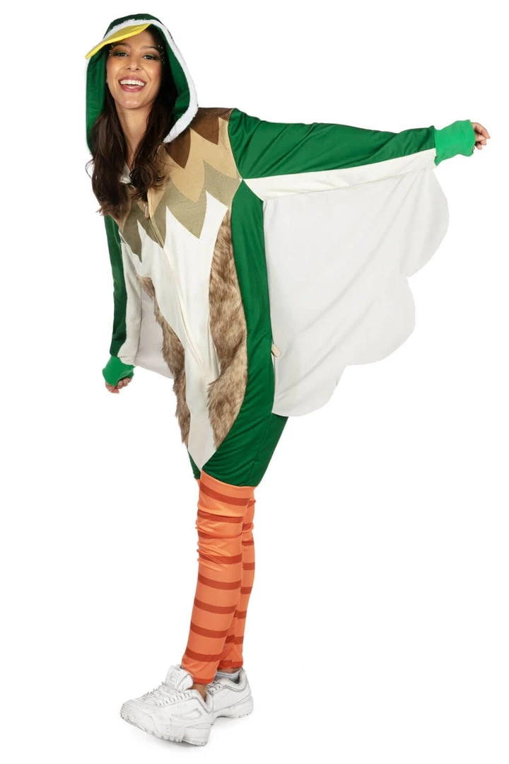 Whether you want to be the perfect wingwoman or you’re just looking to take flight from a lame Halloween party, the Women’s Duck Costume is for you. It’s a one-piece jumpsuit animal costume that gives you a brilliant green feathered look, complete with wings and a bill. That said, our lawyers wanted us to tell you that you shouldn’t actually try to fly with this. Regardless, it’s a bird suit that works for many things. Maybe buy like six of these to have as bridesmaids’ dresses? Just an idea. Birds of a feather and all that. Until then, step into the bird legs and transform into a beautiful bird – except it’ll be a duck instead of a swan. This Halloween, grab the Women’s Duck Costume and the bird will be the final word.