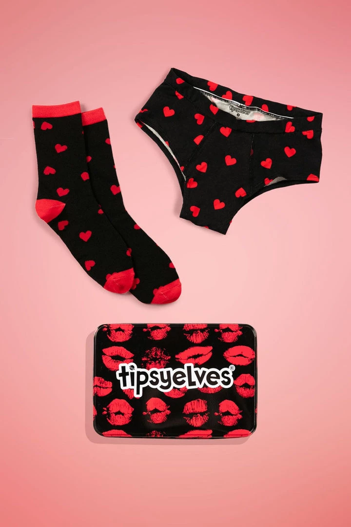 Tipsy Elves Women’s Hearts On Fire Underwear & Socks Gift Set